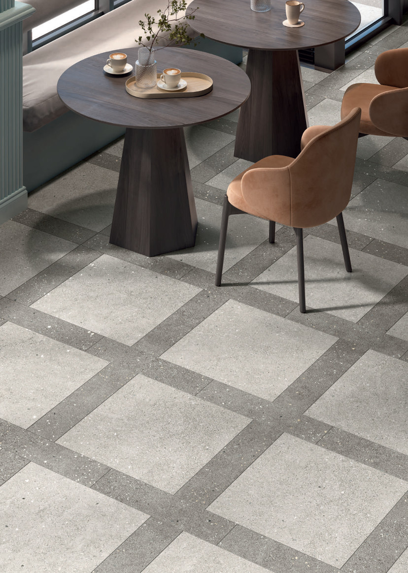 Introducing Gemstone, where the timeless elegance of Venetian terrazzo seamlessly blends with the evergreen grace of limestone. Each tile showcases striking, gem-like fragments set within a delicate stone foundation, creating a dynamic, graphic aesthetic that transforms traditional flooring. Whether you’re looking to infuse your space with refined sophistication or earthy charm, Gemstone tiles offer versatility and style that elevate any design vision.