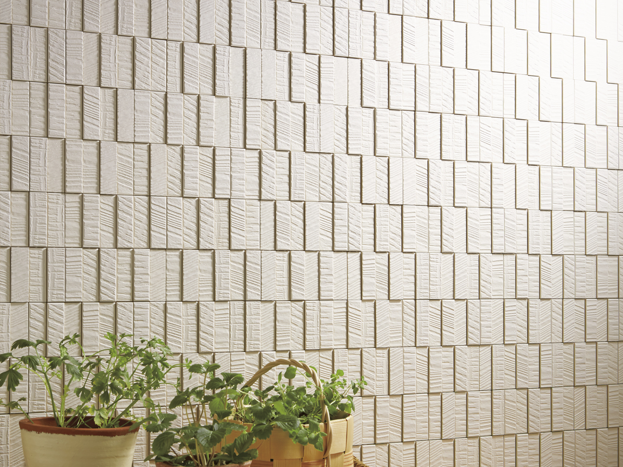 Roughsawn collection, from INAX – ECOCARAT, features a relief finish that resembles roughly cut wood. Rooted in traditional Japanese mud-wall construction, ECOCARAT is a sublime collection of interior wall tiles that combine natural materials and colors with exquisite patterns to impart a sense of unparalleled beauty and relaxation.Defined by design and technology excellence, ECOCARAT features moisture-regulating and odor reducing properties to help enhance indoor comfort.