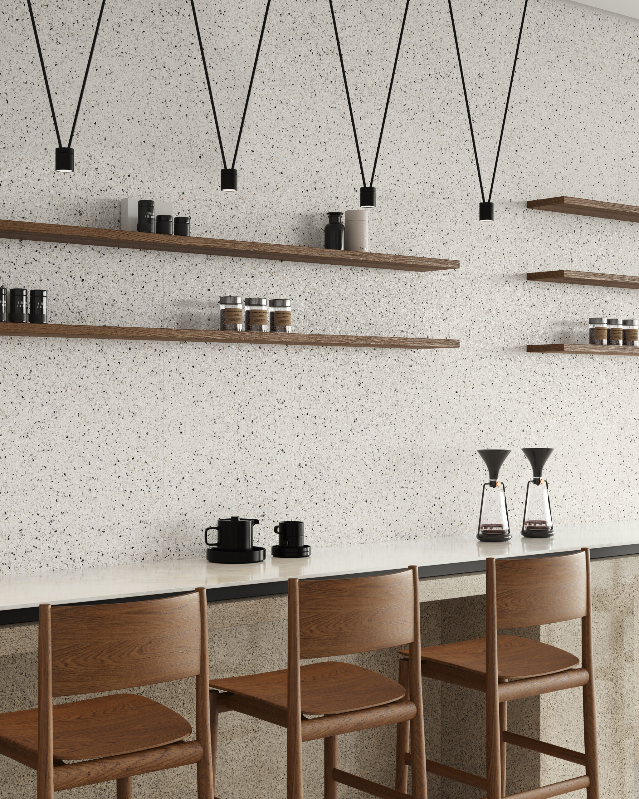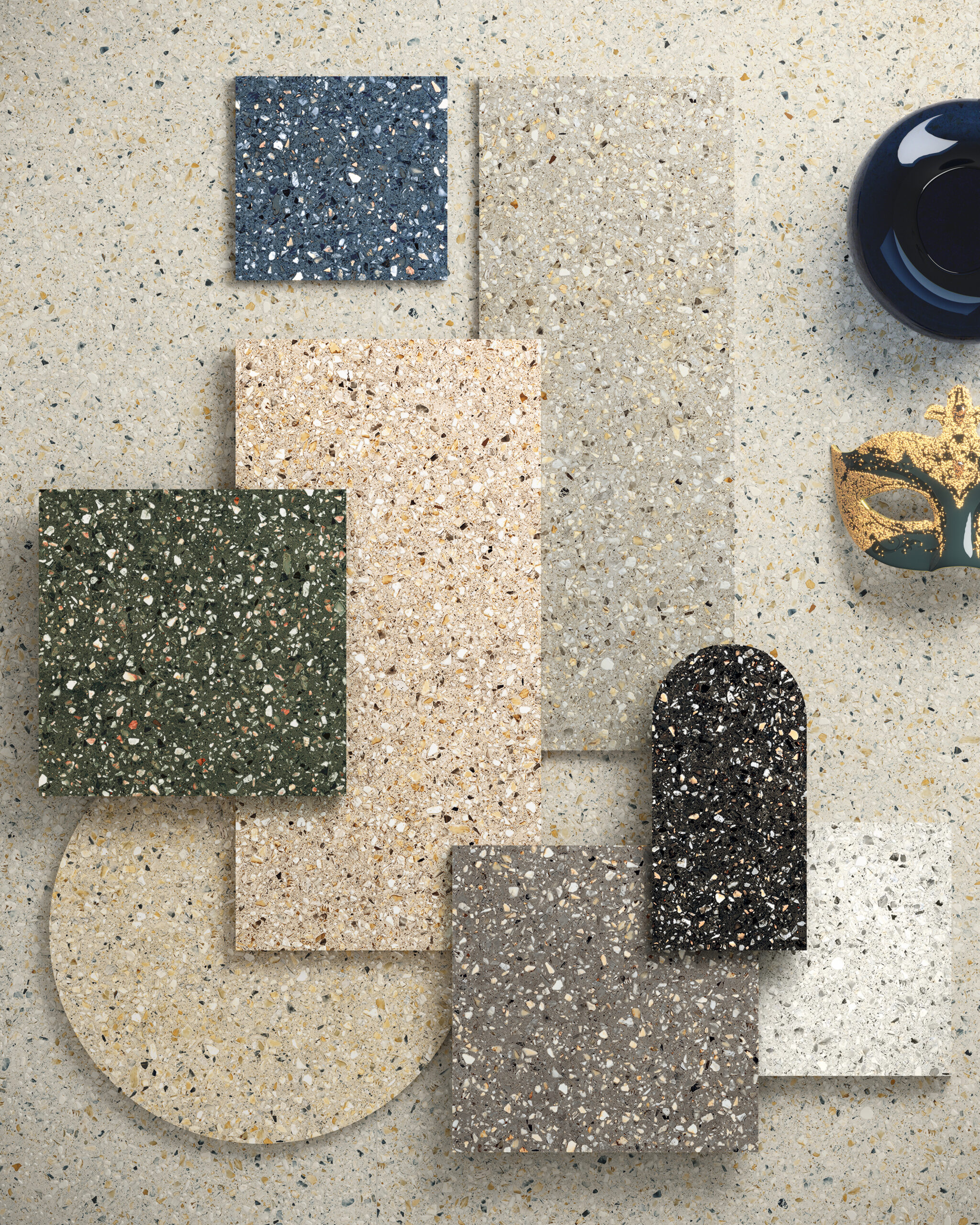 Mystère is an elevated interpretation of the beloved terrazzo look, capturing the essence of antique grandeur and the effervescent spirit of Venice. Inspired by the city’s rich cultural heritage and vibrant artistic scene, the collection draws its muse from the famed Venetian Carnival—celebrated for its colorful costumes, intricate masks, and opulent masquerade balls. Each surface pays homage to these coveted celebrations, where bold speckles and vivid hues come together to create an elegant, striking, and lively expression of Venetian splendor.