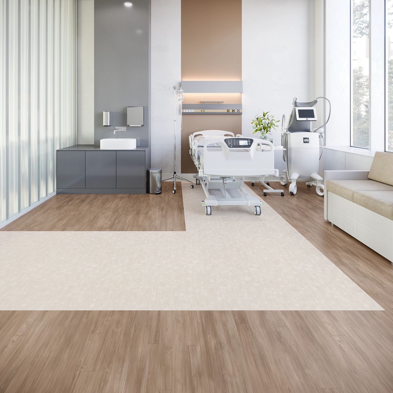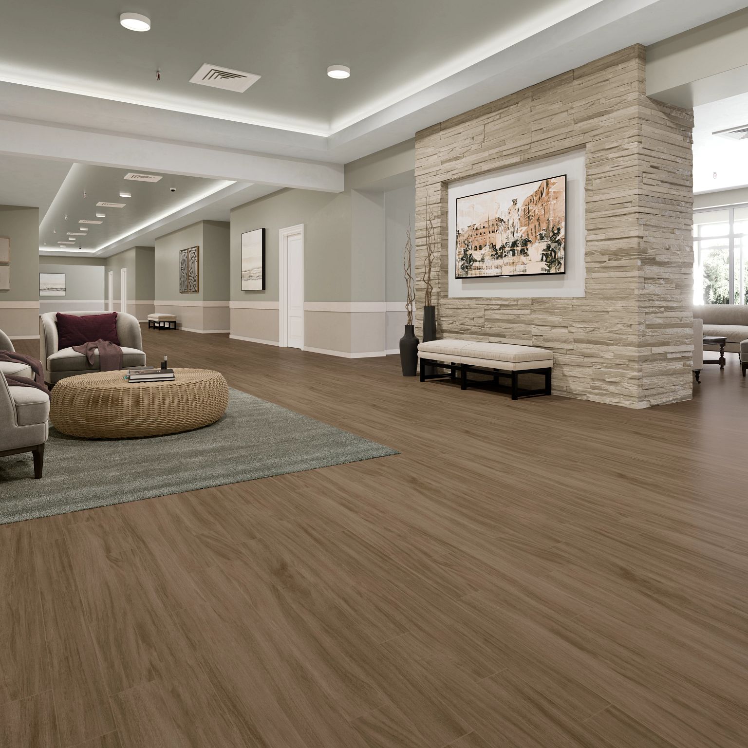 Realities III is a collection of luxury vinyl tiles. As a domestic manufacturer of commercial sheet, Mannington Commercial purposefully crafts multiple width solutions for the healing environment. The simultaneously soothing and crisp collection is ideally suited for healthcare and senior living facilities.